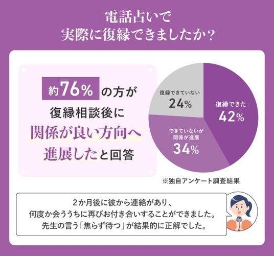 - 約76%が復縁相談後に「関係が良い方向へ進展した」と回答