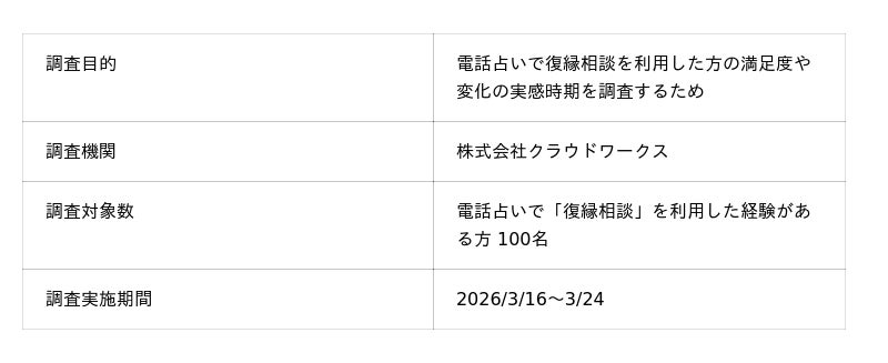 電話占いでの復縁相談に関する利用実態および満足度調査(復縁相談の経験がある100人)