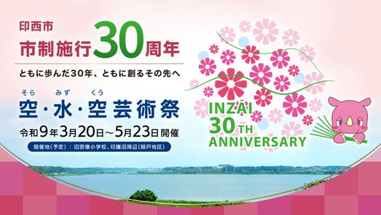 印西市は令和8年4月1日に市制施行30周年を迎えました。公募で決定したフレーズ「ともに歩んだ30年、ともに創るその先へ」のもと、先人への感謝と未来創造の想いを込めて、多彩な事業・イベントを実施します。