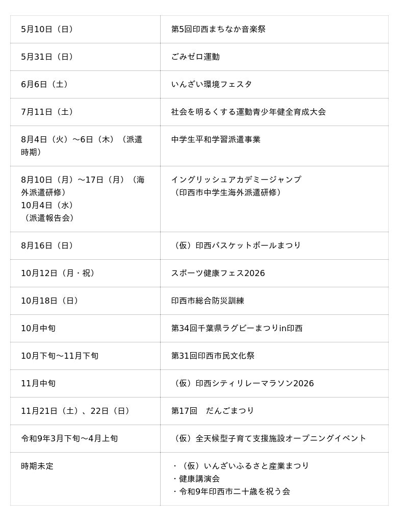 印西市の歩みを映像として後世に残すことを目的に作製し、市公式SNS等での配信や、イベント等で発信します。制作期間:5月から令和9年3月