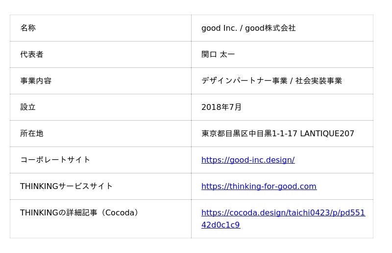 デザインイノベーターカンパニーのgood株式会社(good Inc.)(本社:東京都目黒区、代表:関口太一)は、ビジネスパーソンとクリエイターが対話・共創を通じて相互理解を深めるワークショップ「THINKING」を正式にリリースいたします。大手企業複数企業への提供実績を持ちます。