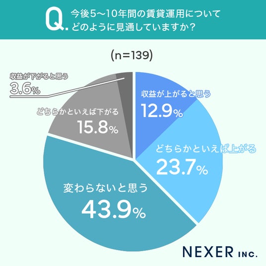 今回は株式会社日住サービスと共同で、事前調査で「賃貸運用の経験がある、もしくは興味がある」と回答した全国の男女139名を対象に「今後の賃貸運用」についてのアンケートをおこないました。