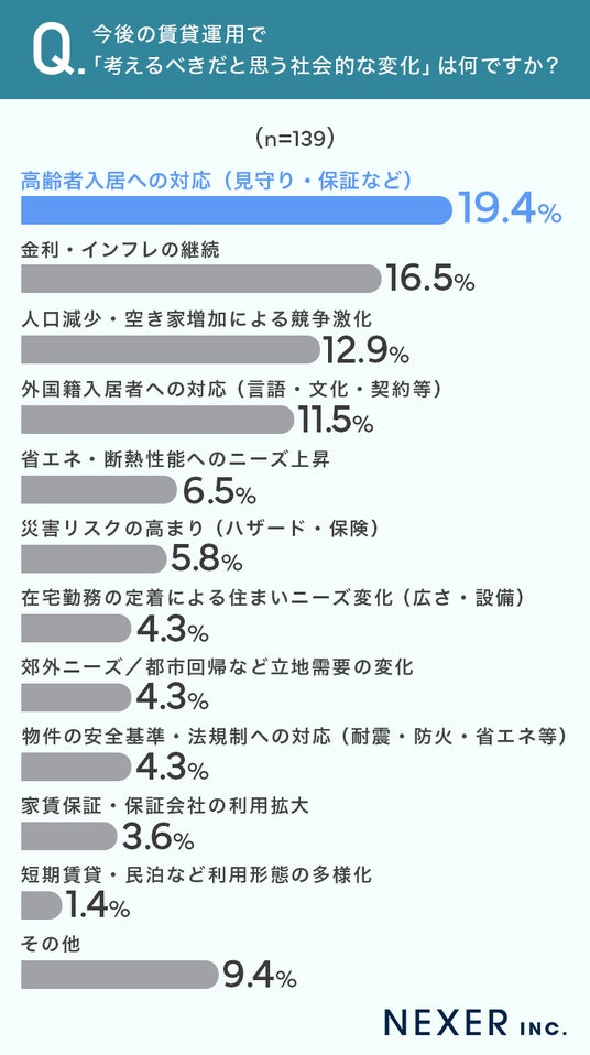 最も多かったのは「高齢者入居への対応(見守り・保証など)」で19.4%でした。