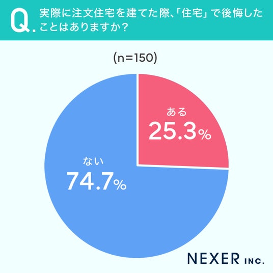 続いて、注文住宅を建てた際に「住宅」について後悔した経験があるかを調査しました。
