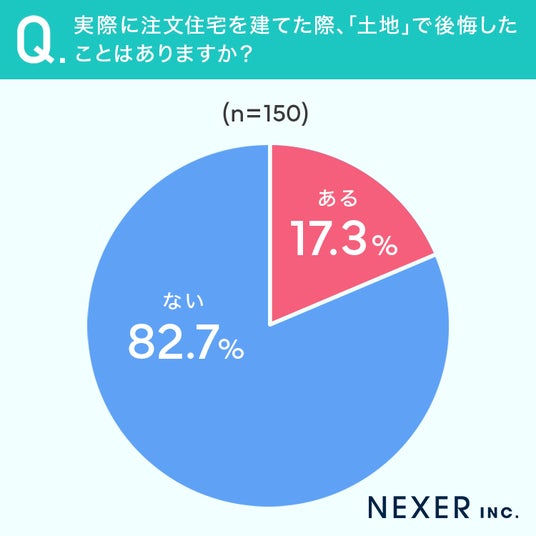 ■17.3%が、実際に注文住宅を建てた際「土地で後悔したことがある」と回答