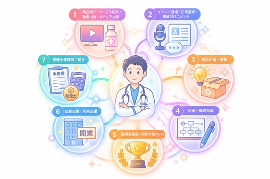 動画作成講座からコラボ支援、税務サポートまで一気通貫し伴走。医療者の新たな活躍機会と、正しい情報の発信基盤を医療界に作り出す。