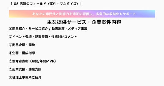 「シンサツマエ」では、案件提案にあたって事前審査の考え方を取り入れ、医療文脈において推奨しにくい案件を避ける姿勢を明確にしています。また、動画・企画・商品企画においても、医療の専門性や倫理性を踏まえながら進行することで、“伸びる発信”と“守るべき信頼”の両立を図ります。発信経験がまだ浅い方には基礎から伴走し、すでに一定の発信実績を持つ方には、より大きな認知や案件化、商品企画、事業化へつながる提案を行います。また、これから本格的にSNS発信を始めたい医療従事者でも参加しやすいよう、事務所への所属料金は無料とし、育成を前提としたサポート体制を整えています。事前に参画するマネージャーからのヒアリングによると、インフルエンサー事務所に所属すると所属費用等により、活動してもインフルエンサー本人の収支がマイナスになってしまうケースが少なくありません。このような理由で事務所を脱退してしまうことを回避すべく、Mediativeのその他事業収益から運営費用を捻出することで、無料で所属いただけるようになりました。