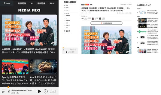 【画像:モバイルトップ画面 / PC記事画面】