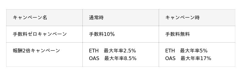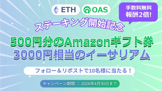 ※報酬2倍キャンペーンの対象は、ETHは最大5ETH、OASは最大1000万OAS(月間平均ステーキング量)です。