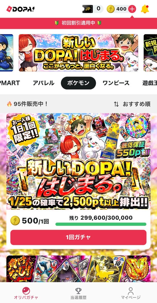 オンラインオリパアプリ 利用者数No.1(※1)のDOPA!、新ブランドロゴ・新キャラクター・新機能など新要素満載の7日間特別キャンペーンを開催。これからどんどん面白くなっていきます!