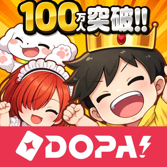 新しいアイコンには、DOPA!のキャラクターたちが集結。「100万人突破」の文字とともに、ユーザーへの感謝と新章の開幕を祝うデザインとなっております。