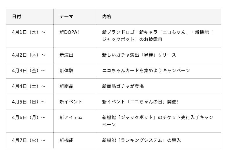 2026年4月1日~4月7日の7日間、「新しいDOPA! はじまる。」をテーマに、毎日テーマを変えながら、新しいDOPA!の進化をお届けします。■ 開催期間:2026年4月1日(水)~ 2026年4月7日(火)