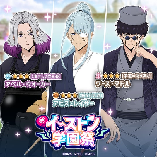 ピックアップされたキャラクターを編成することで、同時開催中の『イーストン学園祭 累計スコアランキング アベルとの対決』を有利に進めることができるボーナス効果が付与されます。イベント限定衣装のキャラクターたちの姿をぜひお楽しみください!