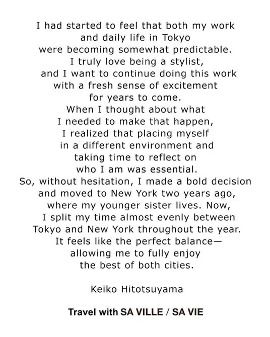 2026.4.1(wed) 連載 Travel with SA VILLE / SA VIE vol.3: Keiko Hitotsuyama
