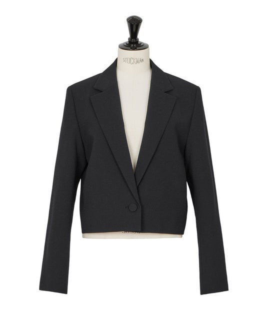 Short Jacket愛知県、尾州産地のテキスタイルメーカーで織り上げたウールジョーゼット素材に、含浸加工で張り感を出した別注素材を使用した、クロップド丈のジャケットは、肩をきちんと構築することでシャープさを引き出し、コンパクトながら存在感のあるボックスシルエットに仕上げています。