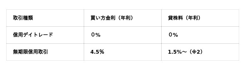 なお、当社が提供している米国株信用取引金利は次のとおりとなっており、貸株料(年利)は業界最低水準(※1)です。