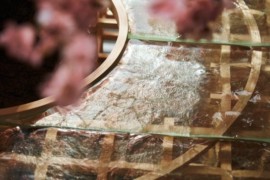 釘やビスを使わない伝統的な「木組み」と、廃棄ガラスから命を吹き込まれたアートの融合