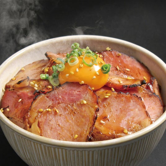 ローストポーク鹿児島県産豚モモ肉を使用し、鹿児島県の老舗醸造メーカーの特注秘伝だれに3日間じっくり漬け込みました。直火焼きロースターで約3時間、余分な脂を落としながら丁寧に焼きあげ、肉の旨味を最大限に引き出しています。スライス幅は肉の食感を活かす約4mm厚に仕上げました。