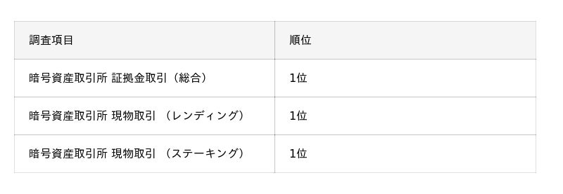 2026年 オリコン顧客満足度(R)調査 暗号資産取引所 証拠金取引 第 1 位