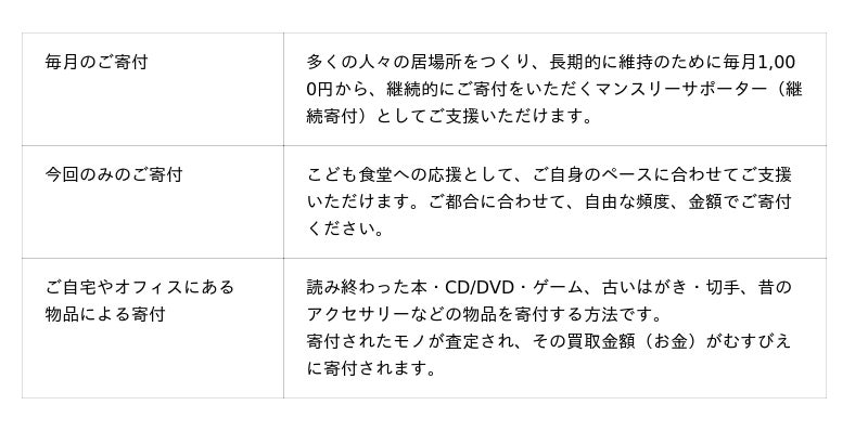 ※下記支援方法の詳細およびその他支援の方法については詳細はこちらをご覧ください。