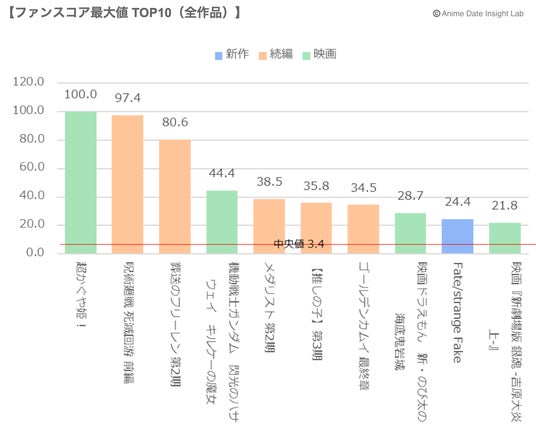 テレビアニメは毎週の放送が「語るきっかけ」を定期的に供給できる。映画は公開という一回のイベントに集約される。その構造的なハンデを超えてファンスコア1位を取った事実は、それだけでも注目に値する。詳しくは後のセクションで分析する。