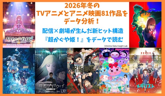 株式会社ブシロード (本社:東京都中野区、代表取締役社長:木谷高明)のグループ分析組織にあたるアニメデータインサイトラボ(代表:大貫佑介)は、アニメビジネスにおける調査を実施しました。今回は、TVアニメと映画アニメの2026年冬アニメ全81作品のデータを分析し、どの作品が視聴者の関心を維持し続けているのか、またどのような変化が生じているのかを分析していきます。報道関係の皆様におかれましては、ぜひ本情報をお取り扱いいただきますよう、お願い申し上げます。