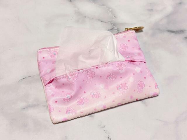 ポケットティッシュをそのまま持ち歩くと、残りが少なくなったときにバッグの中で中身が飛び出してしまうことがあるので、個人的にティッシュポーチは欠かせないアイテム!