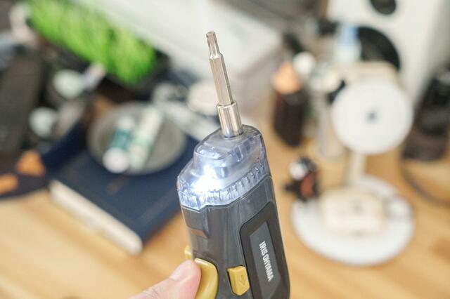 さらに回転と同時にLEDライトが点灯するので、手元が暗くなりがちな場所でもそのまま作業可能。