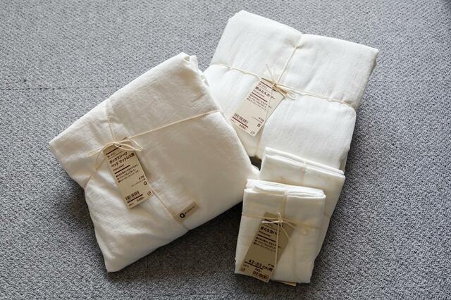 シーツやカバーってサイズが大きいので洗って干して……がなかなか大変ですが、無印良品の「洗いざらし」シリーズに出会ってからはその苦労が軽減されたんです。