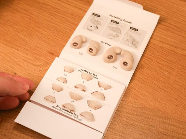 イヤーチップとイヤーウイング、それぞれ合うサイズを試したところ音質がグッと向上。