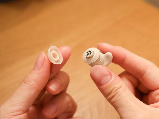 耳の穴に入れるイヤーチップと、耳の凹凸に沿わせるイヤーウイングは、ふにっととてもやわらかい素材。
