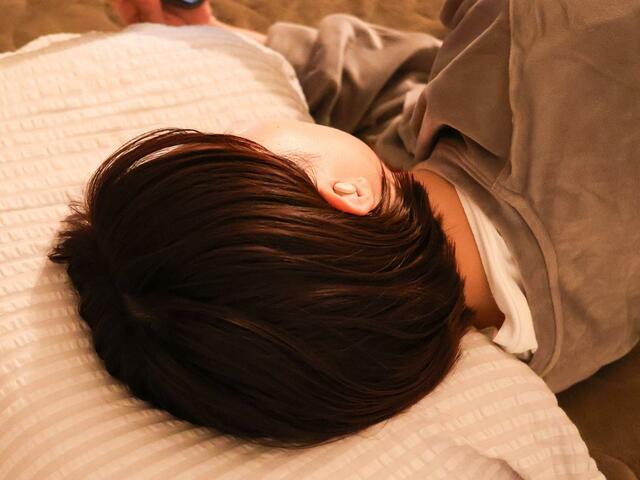 イヤホンをつけたまま眠ると入眠を検知して、入眠時間、寝返りのタイミング、体勢、睡眠時間を記録してくれるんです。