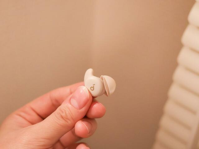 実際にSoundcore Sleep A20をつけたまま眠ってみると、朝起きるまでしっかりと耳についたまま。