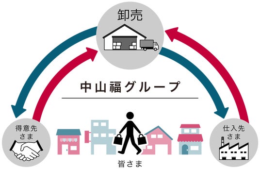 中山福グループは、フライパンなどのキッチン用品、ダイニング用品、収納用品、インテリア、レジャー・ガーデニング用品まで、暮らしに関わる幅広い商品を取り扱っています。さらに物流機能も備えることで、メーカーと小売の橋渡し役として価値を発揮してきました。また、2013年よりM&Aを行い、グループ各社の特性を活かし、皆さまの安定的で豊かな暮らしの実現を目指してまいりました。