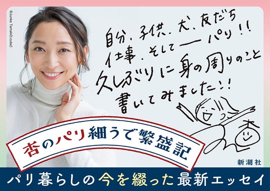 発売後即重版、俳優・モデルの杏さんのフランスと日本のリアルタイムな二拠点生活が描かれたエッセイ『杏のパリ細うで繫盛記』(新潮社刊)が絶好調。月刊誌「波」4月号に掲載されたヤマザキマリさんの書評を公開。