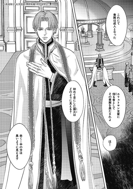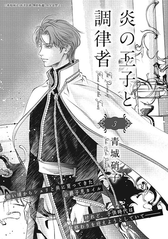 表紙を飾るのは、青城硝子が贈る大人気連載作『炎の王子と調律者』。