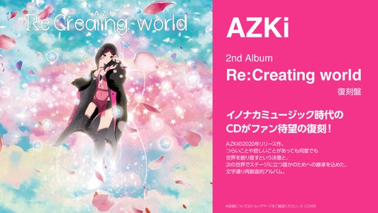 AZKiが2020年にリリースした2nd Album『Re:Creating world』CDがファン待望の復刻!つらいことや悲しいことがあっても何度でも世界を創り直すという決意と、