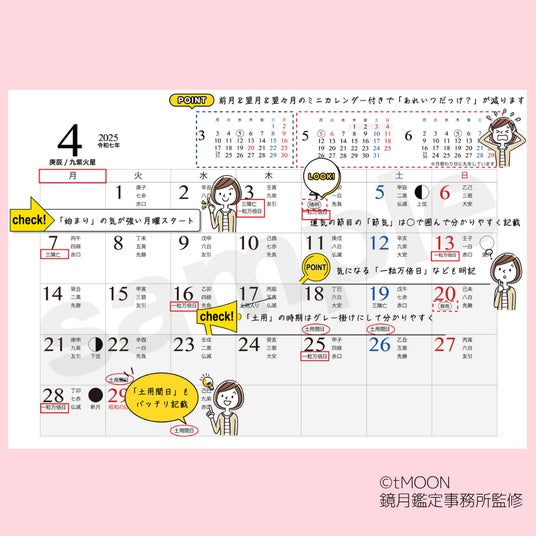 月の満ち欠けに合わせた開運行動を習慣化。あらゆる暦情報が網羅されているため、家庭やプライベートの行事も、最適な日取りを選んで心地よく進めることができます。