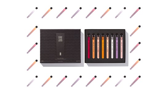 セルジュ ルタンスのシグネチャーラインであるコレクションノワールから、繊細なカラーで彩られた、鋭利な短剣を思わせる8本のフラコン。神話的ともいえる8つの香りのクリエイションが、ここに集結。*