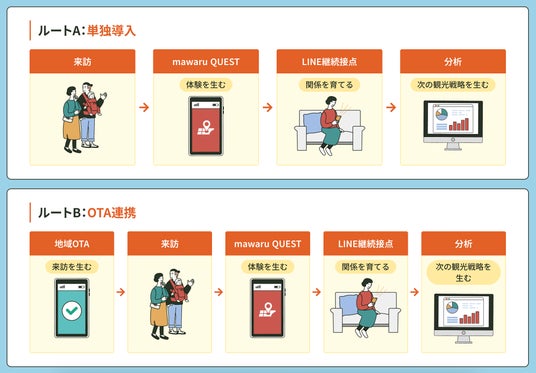 mawaru QUESTは、地域OTAと役割分担することで、観光DXを次の段階へと進化させます。- 地域OTA:来訪を生む(予約・決済)