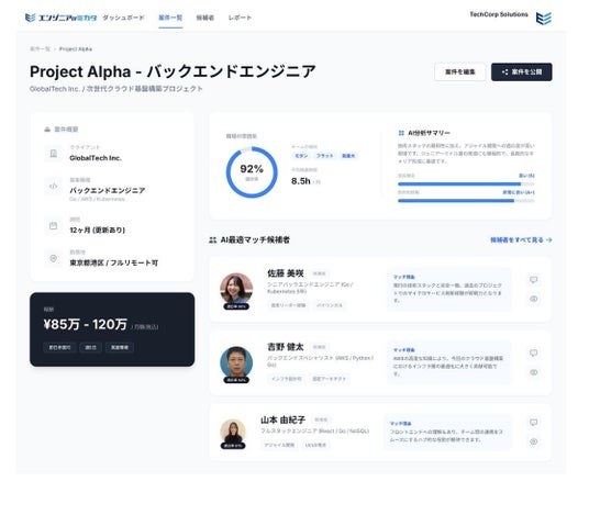 これまでSESのマッチングは、どうしても『人』の感覚に頼る部分が大きく、情報の透明性に課題がありました。今回のシステムでは、我々が現場で培ってきた『この人には、この案件がベストだ』という判断基準を、AIと独自のアルゴリズムによって再現することにこだわりました。今後も、エンジニアの皆さんが自分のキャリアに自信を持って向き合える環境を、テクノロジーの力で支えていきます。企業プレスリリース詳細へ