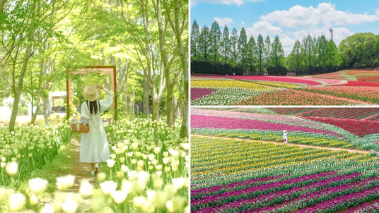 彩り豊かなチューリップが咲きあふれる世羅高原農場