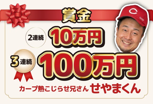 賞品提供協賛内容は「マツダ スタジアム」にて開催される広島東洋カープ1軍公式戦の試合中に、選手が以下の条件を達成するごとに賞品の提供をおこないます。試合中、該当する賞が出るごとに、場内アナウンスでは「ビーイナフ株式会社」が紹介され、大型ビジョンでは、当社代表の瀬山によるキャラクター「カープ熱こじらせ兄さん せやまくん」がデザインされた提供賞品が表示されます。