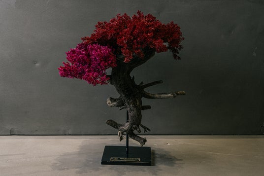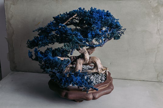 盆栽アーティストといっても生木の盆栽を育てているわけではない。生命活動を終えた盆栽、枯れてしまい廃棄する運命にあった盆栽、それらをドライ化し、アートとして新たに色とりどりな枝葉を付け替えた盆栽へとアップサイクルした"RE BONSAI(TM)️"をプロダクトしている。