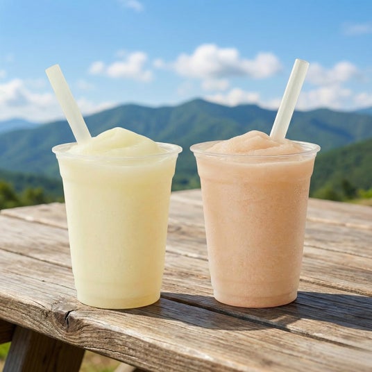 あらごしフローズン「ノンアルコールあらごしゆず」と「ノンアルコールあらごしもも」を使用したオリジナルフローズンドリンク。