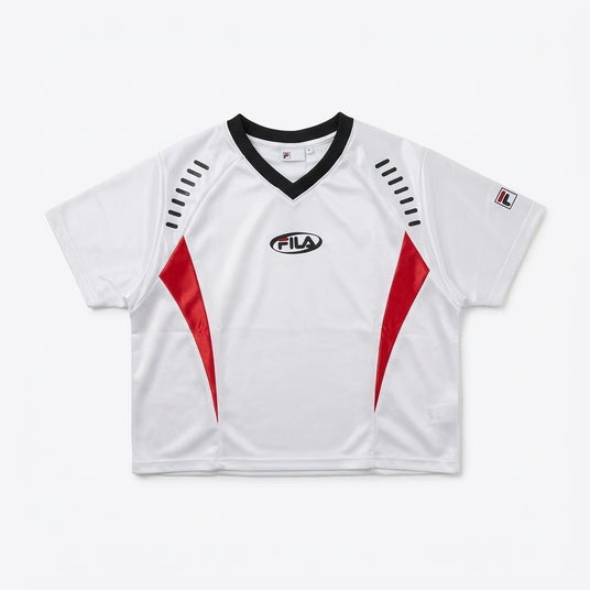 90年代を彷彿とさせる襟付きのクラシックスタイルやグラフィックパターン、FILAのアイコンモチーフであるバレッタを大胆にデザインしたセットアップや、世界中で愛される「SONIC(ソニック)」のエッセンスを抽出したTシャツコレクション、ベースモデルにFILAブランドとしてフットボールシューズのDNAを色濃く継承した「FASCINO(ファッシノ)」を起用したフットウェア等、全11種のコレクションを展開します。