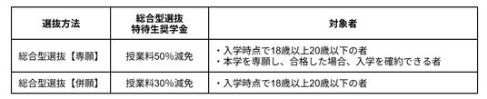 【総合型選抜特待生奨学金について】