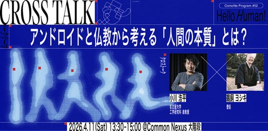 ComoNeプログラム#02 -Hello Human!- 展示開始 &クロストーク 『アンドロイドと仏教から考える「人間の本質」とは』「ComoNeプログラム」は、市民・研究者・クリエイターを巻き込みながら、ComoNeに集まるみんなで探究するプログラムです。2026年4月からは新テーマ「ComoNeプログラム#02 -Hello Human!-」が開催されます。新しい展示が始まることに合わせ、本テーマを深めるべく、2名のゲストを迎えてクロストークを開催。