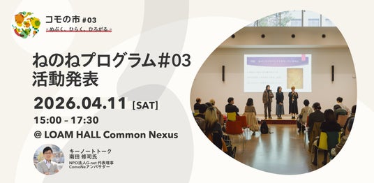 ・17プロジェクトがピッチする「ねのねプログラム」活動発表+ComoNeアンバサダー南田修司氏によるキーノートトーク