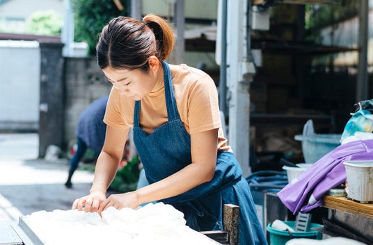 4代目の平本友里さんは、多摩美術大学を卒業し、東京でグラフィックデザイン事務所に勤務。その後、家業を継ぐ中で、デザイナーとしての経験を活かし、女性ならではの感覚と時代に合わせたニーズで、新たな染色の魅力を発信する商品開発も手掛ける。